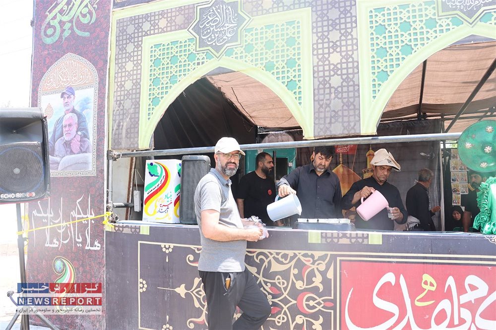 خدمت رسان موکب آبشار عاطفهها در مسیر اربعین 1404 از پنجره دوربین (15 مردادماه)